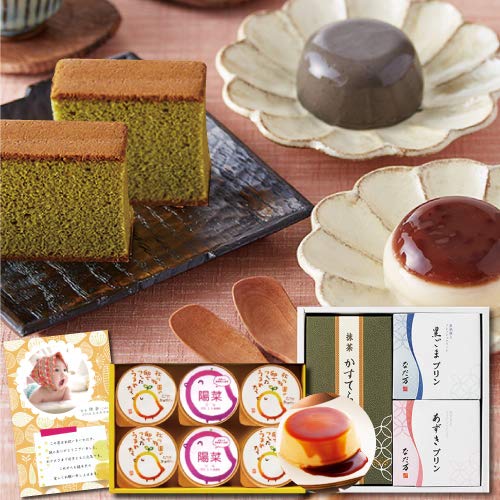 お菓子で有名な「なだ万」の抹茶のカステラと和風プリンだから、美味しいので喜ばれますね。和を感じる渋い抹茶が美味しいカステラと小豆と黒ごまのプリンは、人気がありそうです。日持ちも30日と長いから、心配がいりません。