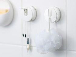バスフックとなっていますが、台所にももちろん使えます。水切りを考えた設計になっていて、底面に入ったスリットと丸みのあるフォルムで水がしっかり切れるようになっています。
