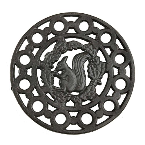 こちら新宮商行のトリベットはいかがでしょうか。中央にリスが描かれている可愛いデザインのトリベットで、しっかりした質感で鍋敷きに使えます。お薦めのアイアングッズです。