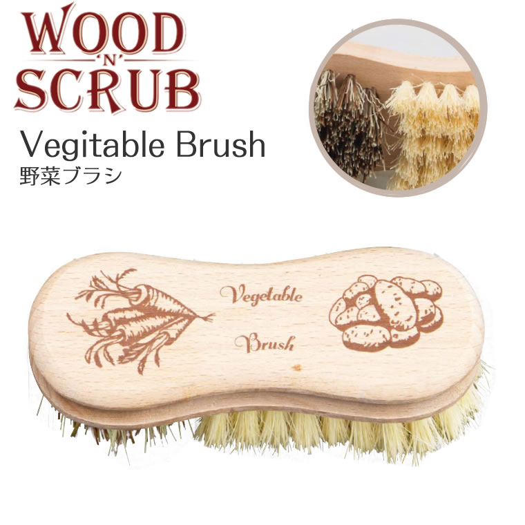 天然木のベジタブルブラシ、じゃがいもとニンジンの絵柄、とても可愛いです。採れたての新鮮野菜を、ジャブジャブ洗って調理し、美味しく頂くのが最高の贅沢ですよね。二種類のブラシ毛が植え込まれているので、野菜に合わせてこのブラシを使い洗うことができますね。デザインが手に持ちやすいのもいいです。