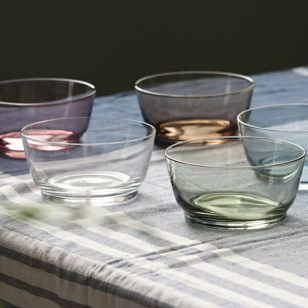 ノスタルジックなクリアカラーがお洒落なこちらのガラス鉢はいかがですか。小さいサイズやグラスもあるので、そうめん入れ、つゆ入れにして使えます。底に厚みがあり安定感があって安心ですし、手に持ったときも指がフィットして持ちやすいようデザインされています。重なりがいいので収納にも場所をとりません。そうめん以外にも毎日使いやすい器です。