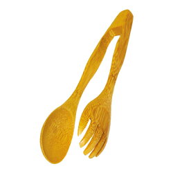竹製のサラダサーバーです。スプーンとフォークが一緒になったようなユーモラスな見た目ですが実用的でおすすめです。