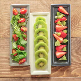 あまり見かけない細身の長皿は、盛り付けのセンスに自身がない私でも、見映えがよくなる気がしています。マットな質感も上品でおすすめです。