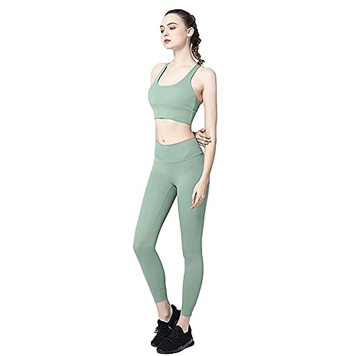 ライトグリーン色の大人可愛いデザインで、シームレスな作りなので肌に優しく快適な着心地のスポーツウェア上下セットです。適度な弾性圧力で動きやすく、吸水速乾でトレーニングに集中しやすいと思います。