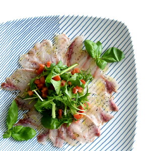 幅の異なる線が交わった、モダンなデザインの重ね縞が素敵なお皿です。幅広い世代の方にお出ししても品よく見えるので、おもてなしシーンにおすすめです!
