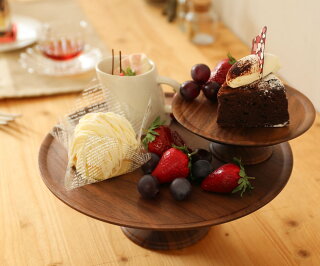 素朴でシンプルでな木製のケーキスタンドはいかがでしょう。こちらサイズ展開もあるので、使い勝手のいいものを選べますし、組み合わせて使うのもいいですよ。木製なので、使えば使うほど味が出てくるのも楽しみ!