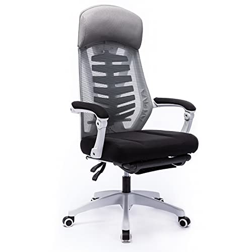 スケルトンといった感じの一風変わったデザインのオフィスチェアです。細かく分かれた背骨部分がしっかり背面をホールドしつつ、メッシュ構造の素材が快適さを維持してくれます。疲れた時に絶対にうれしいフットレストは一度使うと離れられません。