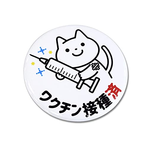 かわいい猫ちゃんのキャラクターの缶バッチです!ワクチン接種済の文字が程よく小さめなので、さりげないアピールに使えます。安全ピンのほかにクリップも付いている仕様なので、穴をあけたくないお洋服のときでもOKです。