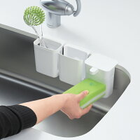 シンクの上ではなく、縁に設置するタイプが珍しくて購入しました。吸盤で背面を固定して使います。シリーズでブラシ入れなどがあり、揃えるとすっきり整います。