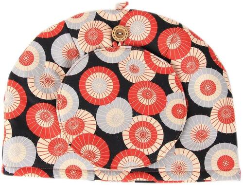 和室にも合わせやすい黒地に番傘柄のお洒落なティーポットカバーですね。職人技で仕上げられた和モダンな味わいある逸品なのでお薦めします。