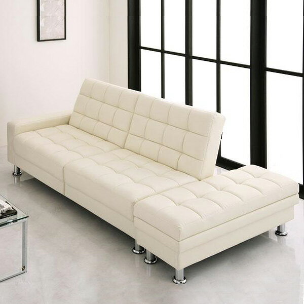 キルティング加工が施されスタイリッシュなデザインでお洒落。背もたれは2分割され幅広いベッドにも早変わり。座面を開ければ収納スペースになるのも良いです。