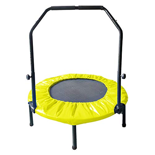 手すり付きの子供用のトランポリンです。広げると約1m程度ですが、折りたためるので、使用しない時はコンパクトにしまうことができます。手すりの高さも細かく設定ができるので、お子様の身長に合わせて変えられます。耐荷重は100㎏程度まで大丈夫なので、大柄なお子様でも安心して使用できますよ。