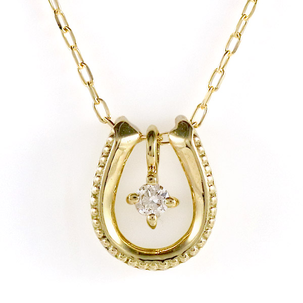 一粒ダイヤと馬蹄型の2WAYネックレスはシンプルで付けやすいデザインが良いですね!肌馴染みの良いイエローゴールドが綺麗です。