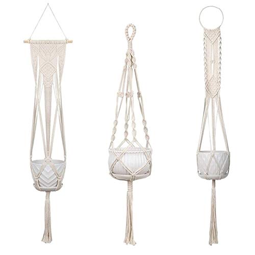 こちらのマクラメ編みのウォールハンギングはいかがでしょうか。それぞれ編み方が違う物が3つセットになっているので単品で飾っても3つ並べてもお洒落なのでおすすめします。
