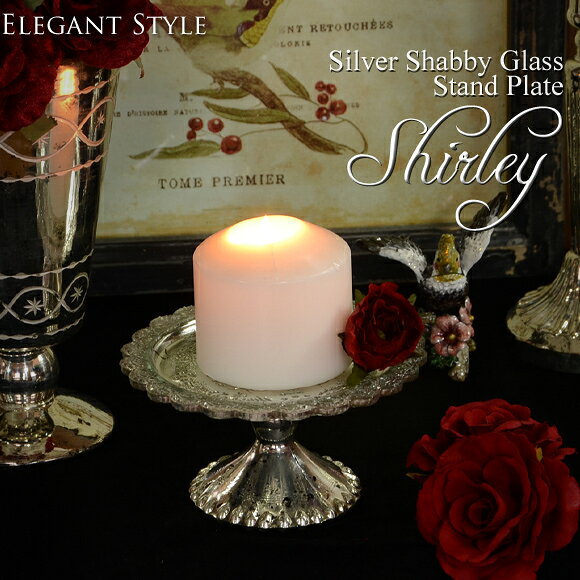 アンティーク風のシルバーガラスのプレートは大き目のキャンドル用ホルダーにぴったり。おしゃれな装飾が施されたキャンドルも、これならデザインをしっかり楽しめますね。