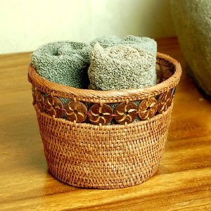 ココナッツシェルのおしゃれなバスケットです。ナチュラルなデザインとイメージ。軽くて扱いやすく、使い心地がいいと思いますよ。