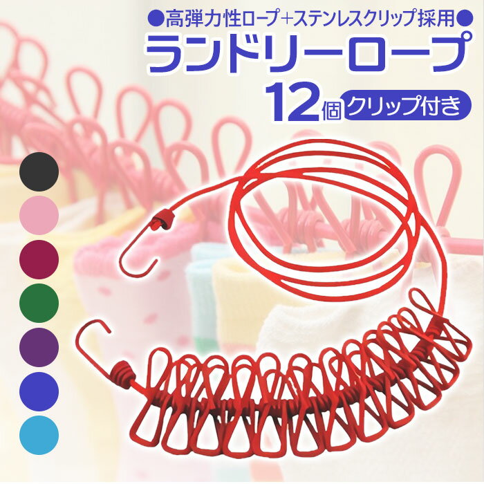カラフルでお洒落なランドリーロープはクリップ付きなので、ロープをはればすぐに洗濯物が干せるのが良いですね!室内や屋外どちらでも使えます。