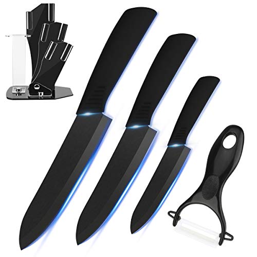 - VKING セラミック包丁セット ナイフ 150mm 125mm 100mm 黒刃 3本包丁 1つ皮むき器 1つ包丁収納スタンド カーブピーラー キッチン4点セット 超軽量 セラミックナイフ フルーツナイフ セラミックピーラー ジルコニアナノメートルセラミック 牛刀 両刃 包丁 万能包丁 切れ味 錆びない 抗菌 清潔 抗酸化加工 セラミックナイフ 切れ味長持ち 三徳ナイフ ペティナイフ 包丁 シェフナイフ 鋭いナイフ お手入れ簡単 業務用 家庭用 洋包丁 高級包丁 文化包丁 シェフズナイフ 庖丁 食器洗い乾