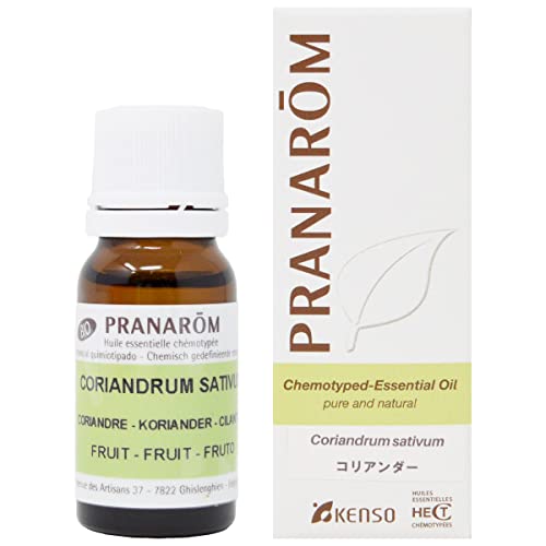 プラナロム社の商品でコリアンダーの香りのエッセンシャルオイルで小瓶10ml入りの品です。濃いパクチー独特の香りの香油で最近はリフレッシュ系ハーブとして人気が出てるアロマオイルになります。