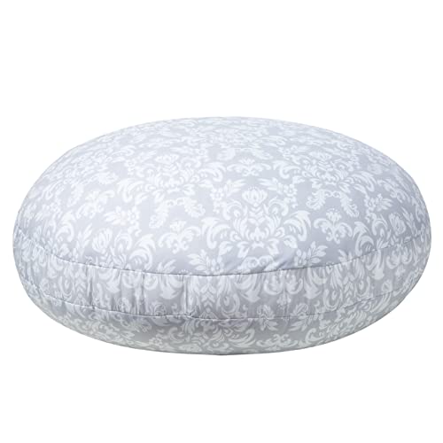 上品なダマスク柄の冷感クッション。直径60cmの大判で、ゆったりともたれたり抱きかかえたりできます。 抗菌防臭、吸汗速乾素材で丸洗いもできるので、汗ばむ季節もいつも清潔に使えます。