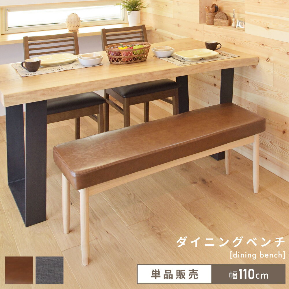 リビング設置に馴染むナチュラルな北欧デザインが嬉しい人気のダイニングベンチですよ。やさしい座り心地は勿論、幅110cmサイズでワイドに使える人気のインテリアアイテムです。フェイクレザーを用いた高級感のある風合いでお手入も簡単な使い心地の良い商品ですよ。