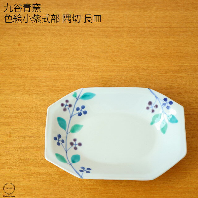 九谷焼の陶芸作家さんの横長タイプの八角皿です。紫式部の実の絵柄で落ち着いた色合いながらも可愛らしい雰囲気があり、絵柄が両サイドにあるのでお料理を盛った時に彩を添えてくれるのが良いと思います。裏側にも少しだけモチーフが飛んでいるのが更にオシャレですね。柄物ですが上品なので、和洋中問わず合わせられると思います。