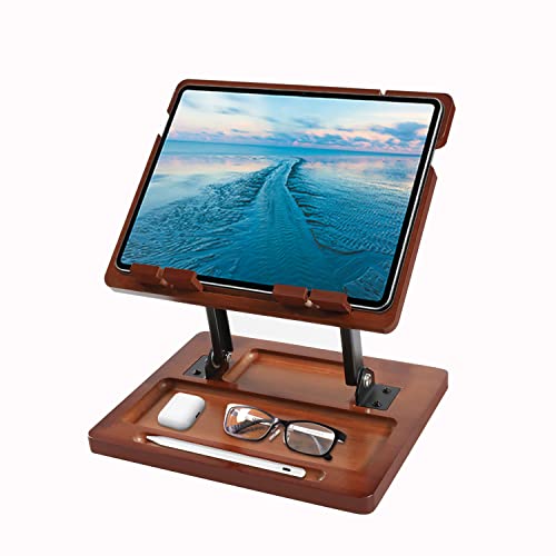 木製のタブレットスタンドで高さ、角度調節出来て一緒に小物も置けるので使いやすそうかなと思いました。軽量で滑り止め付きなので使い勝手もよさそうです。デザインもとてもお洒落だなと思いました。