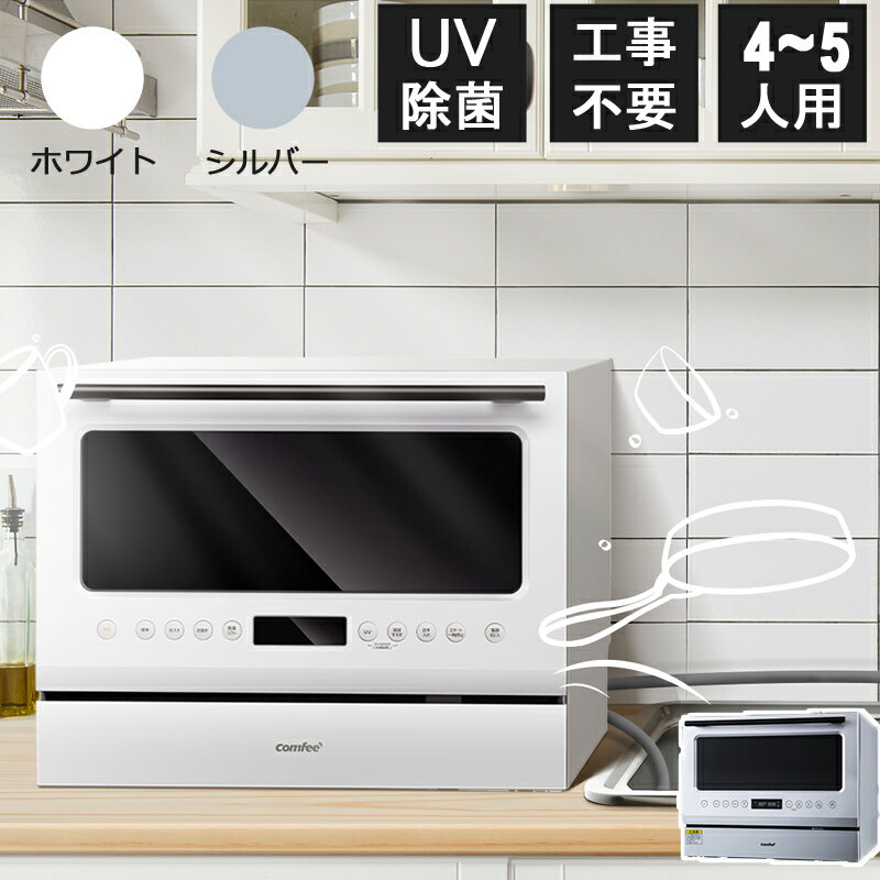 工事不要の据え置き式食器洗い乾燥機です。乾燥だけでなく、UV除菌機能も搭載しています。家族5人分の食器30点が入る大容量なので、まとめて洗うのにおすすめです。