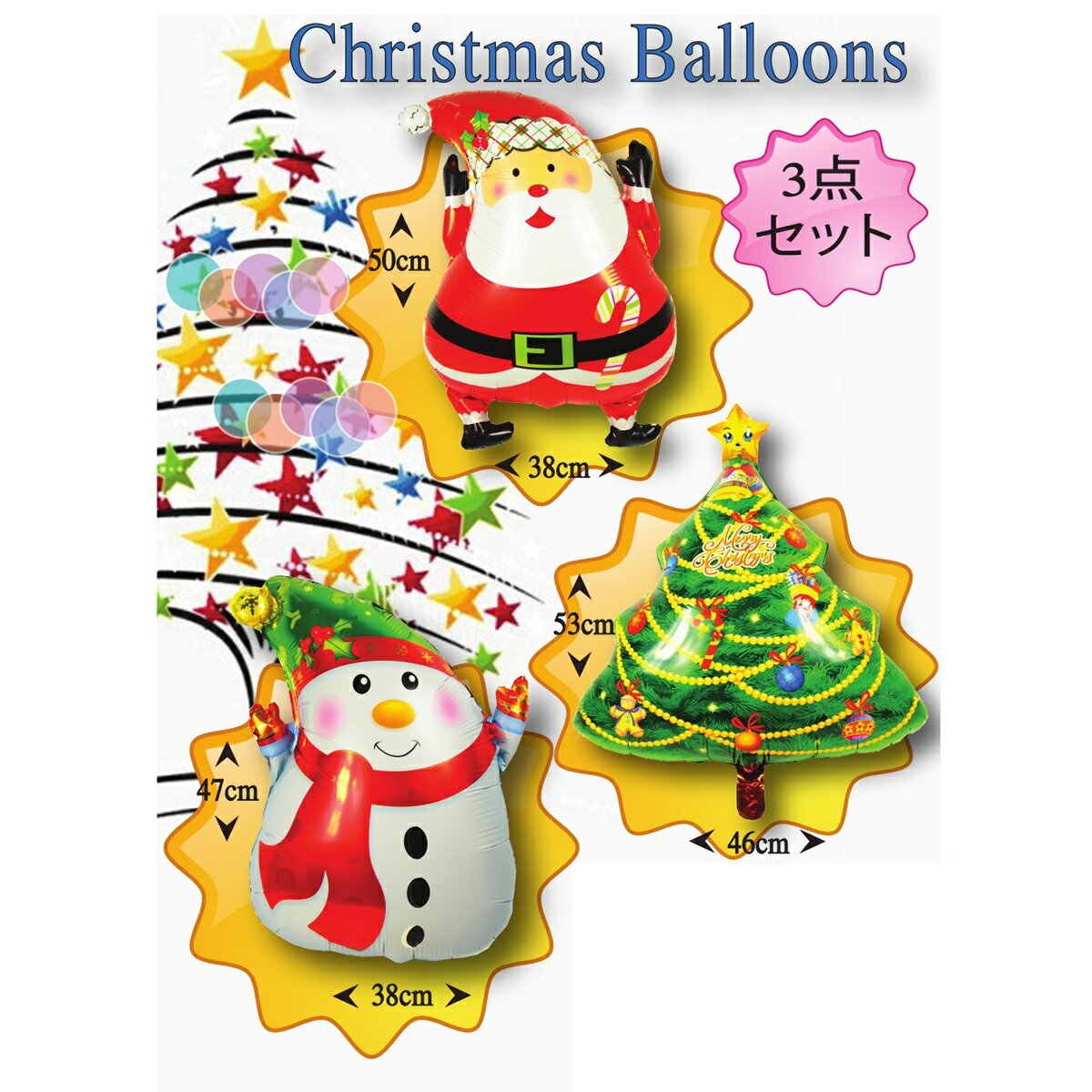 サンタさんだけではさみしいので、サンタと雪だるまとクリスマスツリーの3点セットはいかがでしょう。クリスマスムードが高まると思います。赤や緑のクリスマスカラーのコンフェッティバルーンをプラスするとより華やかになりそう。