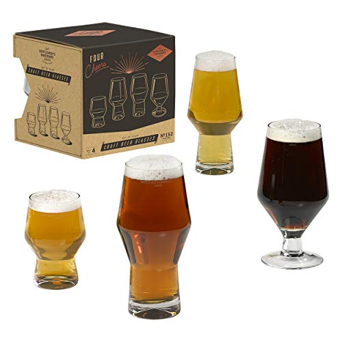 宅飲みの充実化アイテムなら、2つといわず4つのグラスのセットはいかがでしょう。それぞれ異なる形状で、同じビールを飲んでも味が違うかどうかなど、テイスティング気分も楽しめて盛り上がれると思います。おしゃれな雑貨屋さんに置いてあるタイプの製品で、チューリップ型の形状もモダンでおしゃれです。