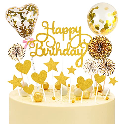 かなりポップで華やかなケーキトッパーです。ハートや星、ペーパーファンの飾りも付いて、小さな子から大人のお誕生用にもお勧めです。