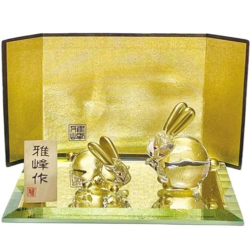 ころんと丸い2匹の親子のかわいいウサギの置物です。きらきら輝るビードロガラスが、金の屏風に映えて幸運が舞い込んで来そうな縁起ものです。