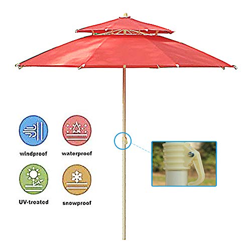 UV耐性素材のガーデンパラソルです。防水性、耐久性、耐風性があるので雨や風の日でも安心です。通気性がいい二十傘になっているので蒸れることもありません。カラフルな色があいがカフェっぽくておしゃれだと思います。