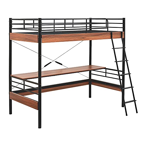 ブラックとブラウンのロフトベッドでデスク付きで便利だなと思いました。木製でブラウンがヴィンテージ風でお洒落だなと思いました。