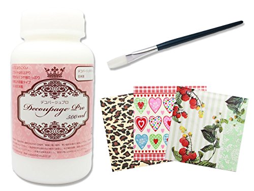 いろいろな柄がプリントされている綺麗なペーパーナプキンとデコパージュ用の糊がセットになった商品です。すぐにデコパージュが始められるセットなので、おすすめです。