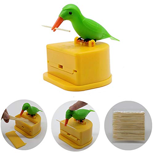 鳥の頭を押すことで自動的につまようじを取り出せる使いやすいアイテム。つまようじとの間接接触を防ぐことができ衛生的な面がお勧めできます。