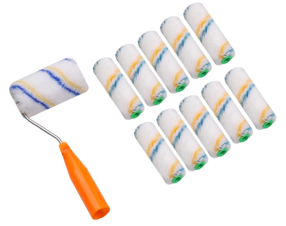 マイクロファイバーのローラー10個とハンドルのセットです。ちょうど良いサイズ感で色んな所を塗るのに便利です。10個セットなので複数色塗るのにも良いですよ。
