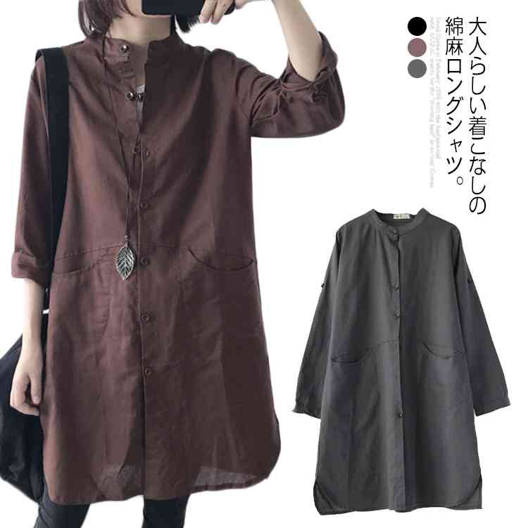 こちらの涼しい綿麻素材のロングシャツはいかがでしょうか?シックな秋色で一枚羽織るだけで、カジュアルで綺麗目なコーデが仕上がります。こなれ感があり大変お洒落ですね。