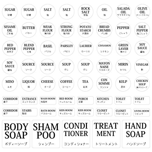 キッチンにある様々な調味料の品名や浴室でつかう物が英語と日本語でわかりやすく表記されたラベルシールです。。統一感があり貼るだけで一目見てわかるので便利です。