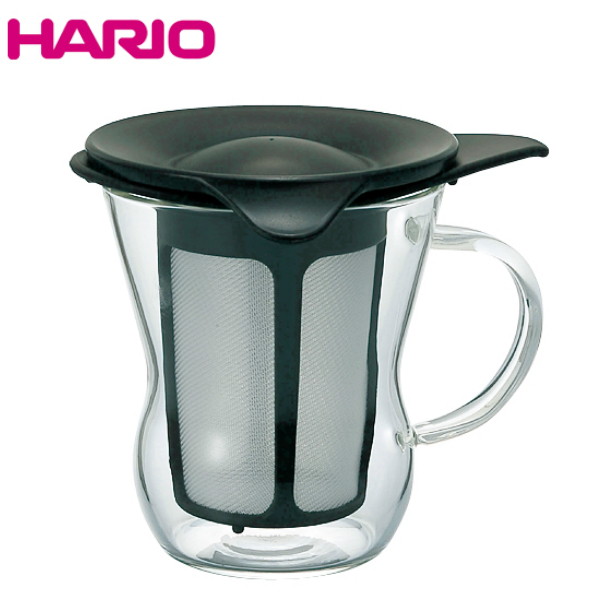 ハリオ製のお洒落なデザインでブラックがアクセントになっているワンカップティーメーカーはいかがでしょうか。とても使いやすくお手入れが楽でフタは逆さにすると、抽出後の茶漉しを置くトレーになるので良いと思います。