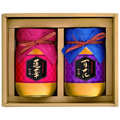 はちみつ専門店「かの蜂」さんの500g×2本セットはいかがでしょうか。希少なれんげ蜂蜜と、様々な花からとれた百花蜂蜜がセットになっています。