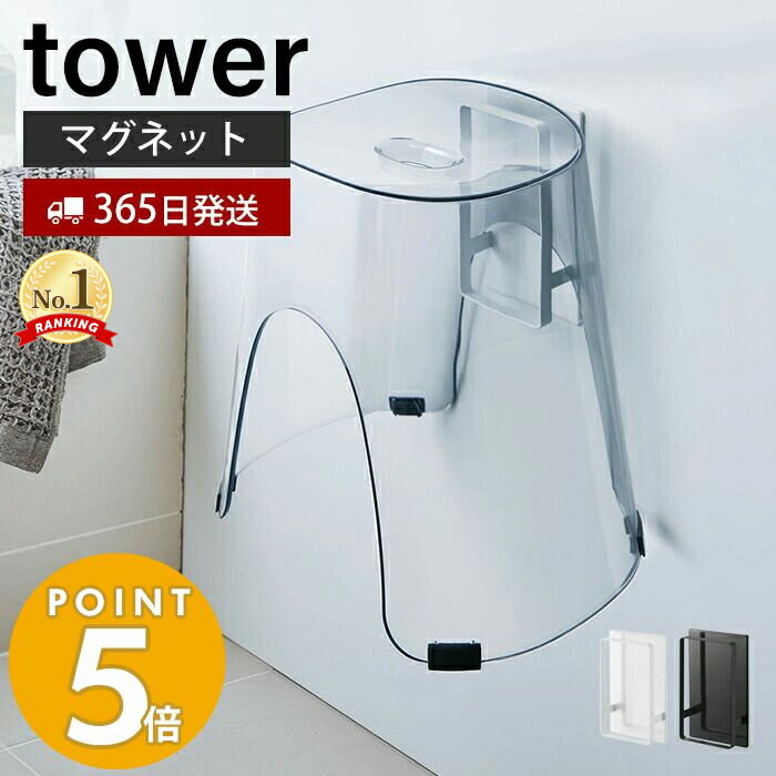山崎実業TOWER製のお風呂の椅子です。強力マグネット付きで、壁面に浮かせて収納出来ますよ。カビ対策になって安心です。クリアなデザインが素敵です。