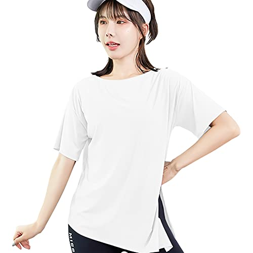 裾がアシンメトリーなTシャツはいかがでしょうか。本来はヨガ用なので、動きやすくて着心地抜群です。吸汗速乾で不快な張り付きもなく、常に快適な状態を保ちます。サイズは4種、カラーは4色から選べます。