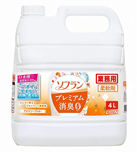 人気ブランド・ソフランの柔軟剤です。4リットルのお得サイズ。アロマソープの香りが楽しめますよ。合わせて、消臭機能もありますよ。