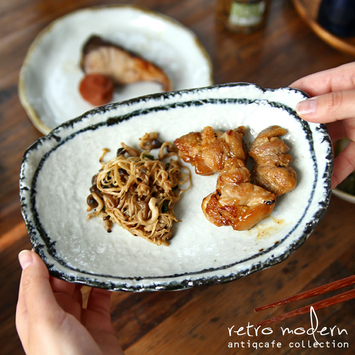 こちらの、美濃焼の陶器製の丸皿は如何でしょうか?いびつな楕円形がおしゃれで高級感がありますよ。マルチに使えてお店で食べているようです。