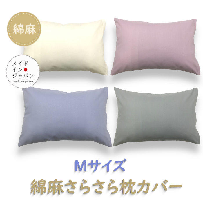 安心の日本製、サラサラな綿麻素材の枕カバーはいかがでしょうか?肌触りがよく、汗をかいても快適に眠れますし柔らかみのある色合いが上品でオシャレです