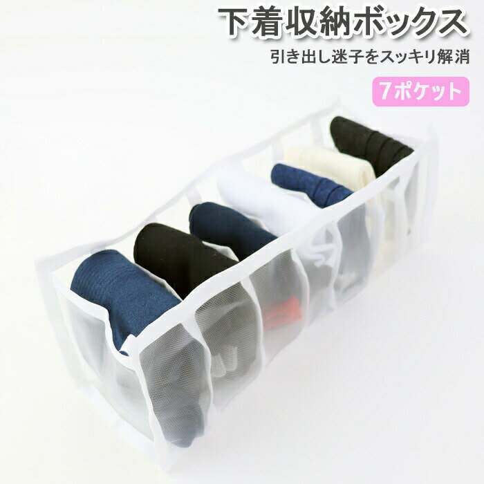 7ポケットの仕切りを備えているので、下着利用にハンカチや靴下など細かい衣類の整理が手早く視認性良く行える人気の収納ボックスがおすすめ。メッシュ素材を持ちているので、通気良く収納が行えて使い心地の良さも大満足ですね。