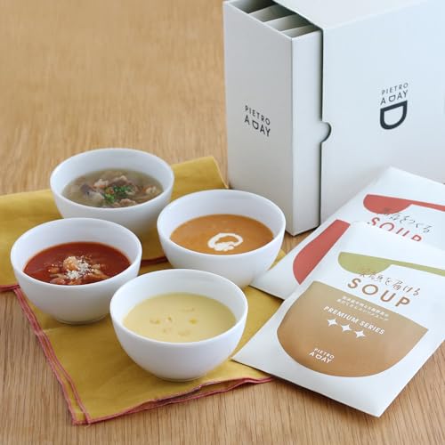ピエトロのありがとうSOUPのギフトでコーンスープ、ポタージュ、野菜スープでたまねぎの旨味や優しい甘さのコーン等ぎゅっと凝縮していて飲みやすくて嬉しいかなと思いました。