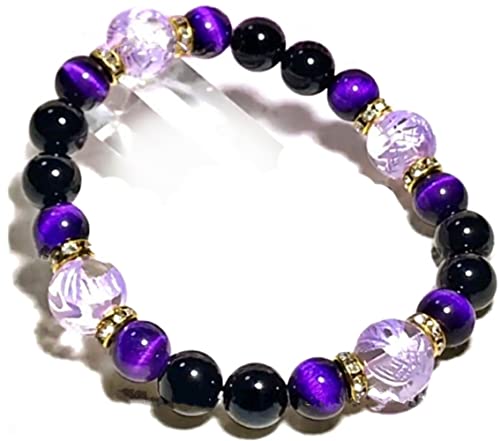 青龍よパープル彫のブレスレットで天然石の水晶がとても鮮やかで綺麗だなと思いました。お洒落で運気アップ出来そうだなと思いました。