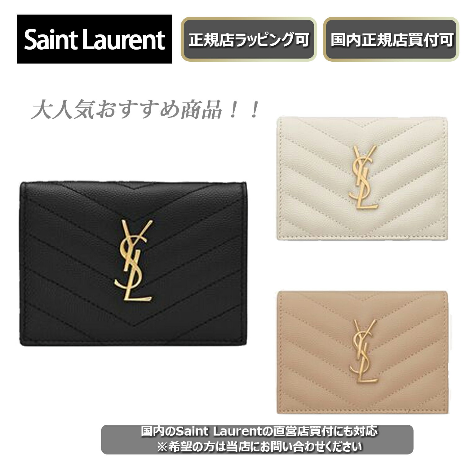 「サンローラン・パリ」のコンパクト財布はいかがでしょう。おなじみのイヴ・サンローランのモノグラムが入ったデザインです。カードは6枚入ります。お色が黒、ダークベージュ、白の3色から選べます。